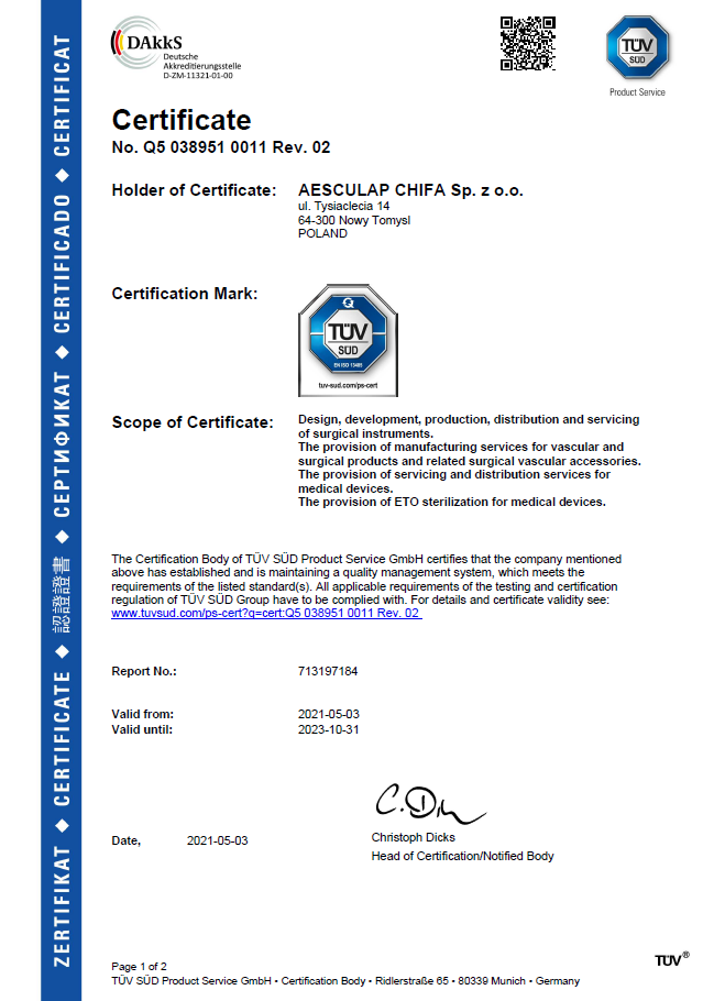 Aesculap Chifa z siedzibą i zakładem produkcyjnym w Nowym Tomyślu oraz Radzyniu Podlaskim należą do międzynarodowego koncernu B. Braun. Przeszło 75-letnia tradycja przedsiębiorstwa w Polsce, około 2500 zatrudnionych pracowników we wszystkich spółkach w kraju i tysiące zadowolonych klientów sprawiają, iż firma stała się ważnym partnerem na rynku medycznym nie tylko w Polsce, ale i na całym świecie.